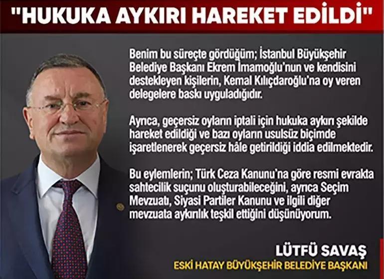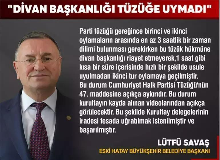 Eski Hatay Büyükkent Belediye Başkanı Lütfü Savaş, CHP'nin 38'inci Olağan Kurultayı'na ilişkin davada müşteki olarak dinlendi. CNN ÇEŞITK Muhabiri Paşa Alyurt, Lütfü Savaş'ın ifadesini yaşıyor yayında aktartı.