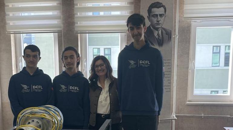 Okulda açılan Bilim Kafe’de Yıldız Hacıevliyagil Cüceloğlu, talebelerle birlikteki teknik tasarıleri inceledi.