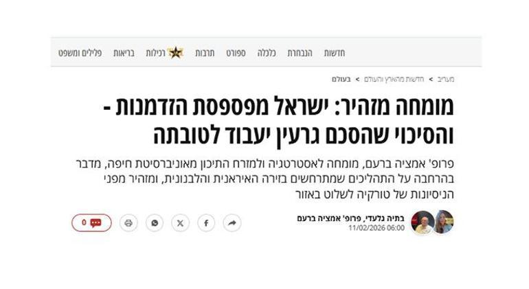MİLLİYET.COM.TR / İsrail basını, Orta Doğu’da değişen kuvvet dmanierini mercek altına aldı. Maariv gazetesine başlıkşan Hayfa Üniversitesi Strateji ve Orta Doğu Uzmanı Prof. Dr. Amatzia Baram, İran, Lübnan ve ABD-İran hattındaki diplomatik temasların İsrail’i karışık tek stratejiklik tabloyla mukabil karşıya bıraktığını belirtirken, Türkiye’nin bölgedeki yükselen rolüne bilhassa aksan yaptı.