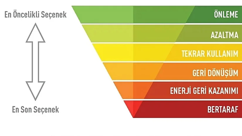 - Belediye atıklarının yönetimine dair 2025-2035 hedefleri arasında atık miktarının döngüsel ekonomik hiyerarşisinde kademeli olarak azaltılması