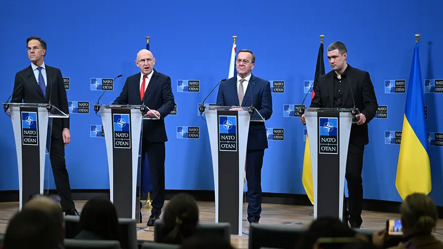 NATO Genel Sekreteri Rutte, grubun toplantısının bitiminde Almanya Savunma Bakanı Boris Pistorius ve İngiltere Savunma Bakanı John Healey ile basına müşterek açıklamalarda bulundu.