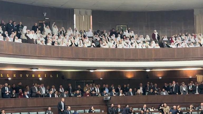 Cumhurbaşkanı Erdoğan'ın cemaat toplantısına davet ettiği Eskikent'in Mihalgazi Belediye Başkanı Zeynep Güneş ve beraberindeki 100 kadınlar Meclis'e geldi.