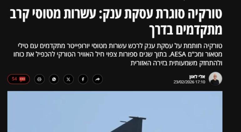 MİLLİYET.COM.TR - Türkiye, havada gücünü ehemmiyetli ölçüde artırmayı hedefleyen içeriklı tek savaşı uçağı tedarikleri programını hayata geçiriyor. İsrail basını, Ankara’nın attığı adımları sıkı takip etmeye devam ediyor.