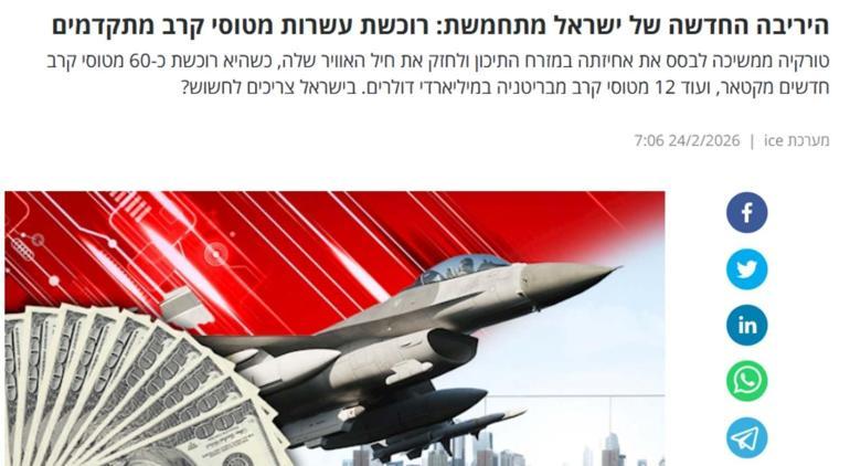 Bir diğer İsrailli kağıt Maariv ise tedariği, “Türkiye, havada kuvvetlerini kuvvetlendirmek amacıyla içeriklı tek Eurofighter Typhoon tedarikleri programını hayata geçiriyor” ifadeleriyle kaleme aldı.