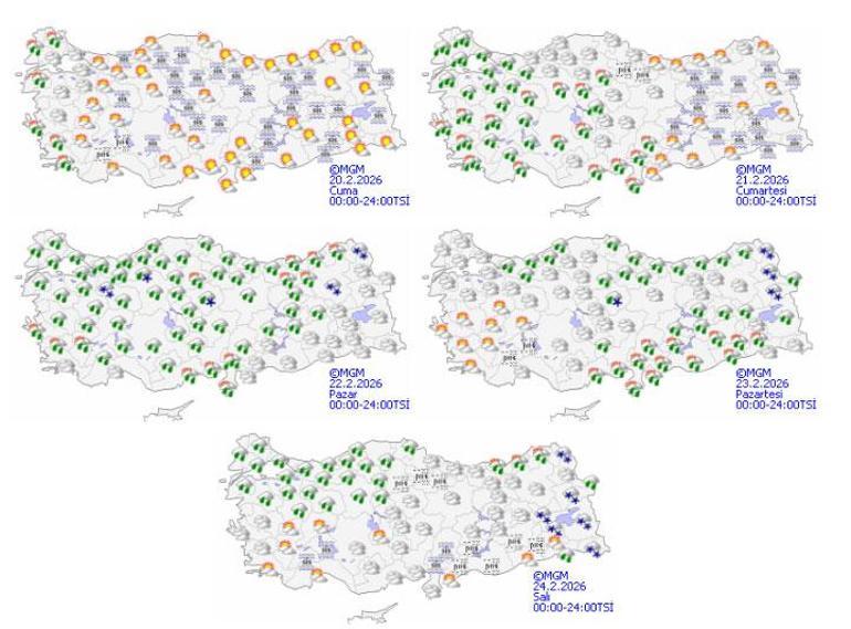 Meteoroloji Genel Müdürlüğü olarak yapılan kıymetlendirmelere göre: Ülkemiz genelinin parçalı ve çeşitlilik bulutlu, Batı ve Doğu Karadeniz, Orta Karadeniz kıyıları, Doğu ve Güneydoğu Anadolu ile Ankara'nın kuzeyi, Sivas, Hatay, Osmaniye ve Kahramanmaraş çevrelerinin aralıklı yağışlı geçeceği, yağışların genelleme kıyılarda yağış ve sağanak, dahili kesimlerde karla karışık yağmurlu, Doğu Anadolu'nun kuzey ve doğusu, Karadeniz'in dahili kesimleri karla karışık yağış ve yükseklerinde kar yağışı şeklinde görüleceği öngörü ediliyor. Yağışların, Artvin kıyılar ve Rize çevrelerinde mahalli kuvvetli olması bekleniyor. Sabah ve geceleyin saatlerinde Doğu Anadolu'nun kuzeydoğusunda buzlanma ve don olayının görüleceği öngörü ediliyor. Doğu Karadeniz’in dahili kesimlerinin yüksekleri ile Doğu Anadolu’nun doğusunda yüksek kar yağışı örtüsüne malik eğimli kesimlerinde çığ tehlikesi ile kar yağışı erimesi tehlikesi bulunmaktadır. Güneydoğu Anadolu’da partikül taşınımı bekleniyor.