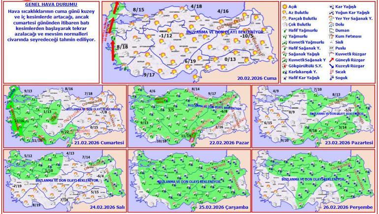 CNN Türk Meteoroloji Danışmanı Prof. Dr. Orhan Şen, “Batıda ve İstanbul’da bugünden ve yarından sıcaklığı vasat civarında. Yarın lodos 13-14 C ye çıkartır. Cumartesi ortalamanın altına düşer. Gecesi İstanbul’dan genler karla karışık yağış ve yükseklerde kar yağışı geçişleri olur. Pazar gününe da sarkar. Pazar günü 4-5 C ye düşer. Pazartesi tekrar otalamanın üzerine 11-12 C olur. Pazar akşamından itibaren kar yağışı da kalmaz yağışta kalmaz. Önümüzdeki haftaya bakacağız kar yağışı için”