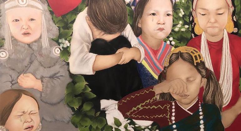 Rina Oh'nun 'çocuk' temalı eserlerinden biri